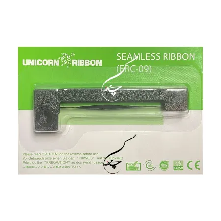 • ریبون پرینتر سوزنی ERC 09 ریبون پرینتر سوزنی ERC 09 با رنگ چاپ آبی محصول برند یونیکورن Unicorn می باشد. این ریبون یک پارچه یا SEAMLESS واردات چین می باشد.پرینتر ماتریس سوزنی ضربه ای دارای هد متحرکی است که در جهت جلو و عقب یا بالا و پایین روی صفحه حرکت می کند. این هد روی یک ریبون جوهر دار ضربه وارد کرده و روی کاغذ اثر به جا می گذارد. این تکنولوژی شباهت زیادی به ماشین های تایپ دارد.اما بر خلاف ماشین های تایپ حروف به وسیله یک ماتریس سوزنی طراحی و کشیده می شوند. در نتیجه فونت های متنوع و گرافیک دلخواهی توسط این پرینتر تولید می شوند. پرینتر های سازگار با این ریبون را در زیر لیست شده است: Epson – ERC09, M150, M160, M161, M163, M164, M180, M181, M182, M183, M185, M190, M191, M192, M195, HX-20, HX-40, P-40 Casio – DT-6000, FE-700, PCR-365 Samsung – ER-700