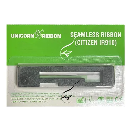 • ریبون پرینتر سوزنی Citizen IR910 ریبون پرینتر سوزنی Citizen IR910 با رنگ چاپ مشکی محصول برند یونیکورن Unicorn می باشد. این ریبون یک پارچه یا SEAMLESS واردات چین می باشد.پرینتر ماتریس سوزنی ضربه ای دارای هد متحرکی است که در جهت جلو و عقب یا بالا و پایین روی صفحه حرکت می کند. این هد روی یک ریبون جوهر دار ضربه وارد کرده و روی کاغذ اثر به جا می گذارد. این تکنولوژی شباهت زیادی به ماشین های تایپ دارد.اما بر خلاف ماشین های تایپ حروف به وسیله یک ماتریس سوزنی طراحی و کشیده می شوند. در نتیجه فونت های متنوع و گرافیک دلخواهی توسط این پرینتر تولید می شوند. پرینتر های سازگار با این ریبون را در زیر لیست شده است: Citizen CBM910 Citizen CBM911 Citizen CBM920 Citizen IDP3110 Citizen IDP3110-24X Citizen IDP3111 Elkutec Electronic FD910