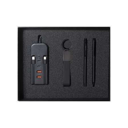 • انتخابی حرفه‌ای برای اهدا به مدیران و مشتریان خاص اگر به‌دنبال هدیه‌ای خاص و کاربردی هستید که هم ظاهر شکیل داشته باشد و هم برای مخاطب شما مفید باشد، این ست هدیه مدیریتی دقیقاً برای همین هدف طراحی شده. ترکیبی مدرن از اقلام مدیریتی، مناسب برای استفاده‌ی روزمره در فضای کاری، که با بسته‌بندی حرفه‌ای، تصویری مثبت و حرفه‌ای از برند شما ایجاد می‌کند. اقلام موجود در این ست: هاب با خروجی USB و Type-C؛ برای اتصال آسان تجهیزات دیجیتال جاکلیدی با طراحی رسمی و بادوام خودکار و روان‌نویس فلزی؛ خوش‌دست، کلاسیک و مناسب برای حک لوگو تمام اقلام درون یک هاردباکس اختصاصی چیده شده‌اند و همراه با بگ مقوایی شیک ارائه می‌شوند. این ست برای هدیه دادن به مدیران، مشتریان کلیدی و افراد اثرگذار، یک انتخاب کاملاً حرفه‌ای محسوب می‌شود. 3874