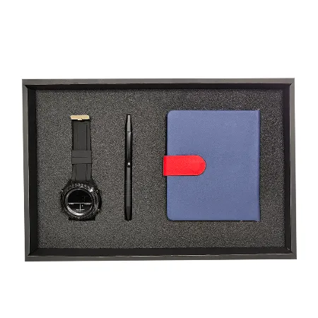 • مزیت استفاده از ست هدیه تبلیغاتی ویژه تهران سارنگ این کیت تبلیغاتی مدرن قابلیت حک آرم تجاری و درج لوگو روی همه اقلام و جعبه را دارا است. بطوریکه افراد با داشتن این اقلام تبلیغاتی جذاب همواره نام برند شما را در ذهن و خاطر خود و نزدیکانشان زنده نگه خواهند داشت. این ست تبلیغاتی جوان پسند شامل نوت بوک چرمی با قفل مغناطیسی، ساعت مچی دیجیتالی قابل تنظیم با بند چرمی اسپرت و خودکار فلزی با جوهر روان، تمام آن چیزی است که بعنوان یک هدیه تبلیغاتی مناسب برای استایل کژوال می توانید به مشتریان VIP و مخاطبان برند و شرکت خود اهدا کنید. این ست تبلیغاتی فاخر تهران سارنگ ایده آل برای هدایای شرکتی و گیفت های قدردانی و تشکر در مراسمات و سمینارها به مشتریان وفادار یا پرسنل سخت کوش و توانمند شرکت است.