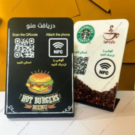 • سایز استند ها 15*10 سانتیمر می باشد . ارائه لینک محتویات تگ nfc و qrcode از جمله منو و ... به عهده مشتری می باشد . فایل طراحی 10*15 سانتیمتر و به صورت CMYK 300dpi باشد .