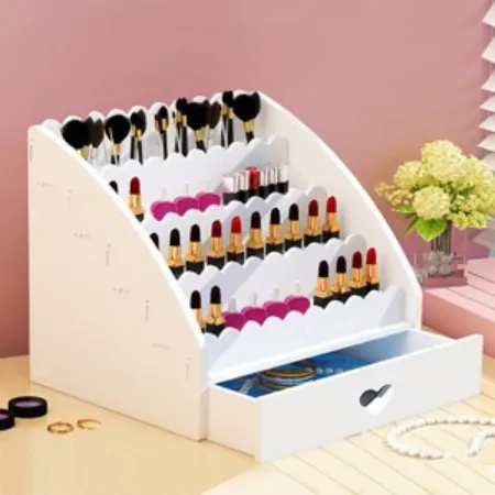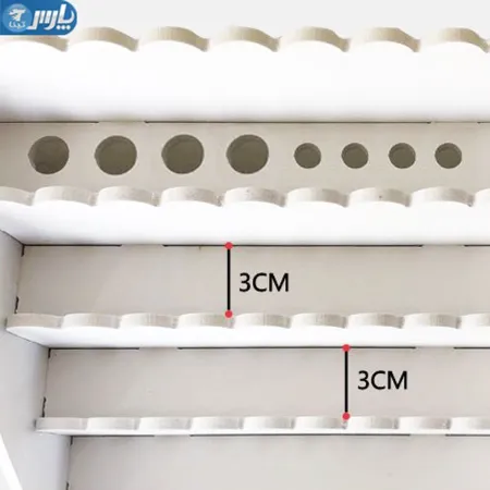 • لاک از جمله لوازم آرایشی پر مصرف در میان خانم ها است . تنوع رنگ و همچنین تفاوت در نوع آنها باعث شده تا در هر خانه و بر روی هر میز آرایشی لاک های متعددی وجود داشته باشد که بسته به سلیقه از هر کدام از آنها استفاده می شود . نوع بسته بندی لاک ها در کنار ابعاد کوچکی که دارند ، نگهداری از آنها را به خصوص در شرایطی که تعداد بالایی را داشته باشید دشوار می کند ، موضوعی که نیاز به داشتن فضایی اختصاصی برای نگهداری از آنها را مطرح می کند . نیازی که با استفاده از استند ها و نگهدارنده های لوازم آرایشی طراحی شده تا به حال به خوبی پاسخ داده شده . اما این بار با نمونه ای متفاوت از این نوع محصولات ، با عنوان شلف جا لاکی آشنا خواهید شد . شلف جای لاک ، محصولی با طراحی نوین و در عین کال بسیار کاربردی برای استفاده کلیه خانم ها است . این شلف از جنس پی وی سی مقاوم و با کیفیت تولید شده که اصلی ترین خصوصیت آن را می توان مقاومت در برابر آب عنوان کرد ، ویژگی ای که به سادگی می تواند امکان تمیز کردن و یا در صورت نیاز شست و شوی شلف را فراهم آورد . شلف لوازم آرایشی دارای چهار طبقه پلکانی می باشد که سه عدد از آنها برای نگهداری لاک و یا لوازم آرایشی دیگر نظیر رژ قابل استفاده است . طبقه چهار استند دارای کفی با هشت سوراخ در ابعاد متفاوت است . این طبقه به نگهداری لوازم آرایشی باریک نظیر مداد و براش اختصاص دارد . سوراخ های ایجاد شده در کف طبقه چهارم استند لاک رومیزی ، امکان نگهداری این دسته از ابزار آرایش به صورت ایستاده جهت دسترسی سریع تر در کنار نگهداری آسان تر را محیا نموده . در زیر طبقات نیز یک کشو قرار گرفته که درب آن دارای دستگیره از نوع سوراخ به شکل قلب می باشد . این طراحی در کنار شکل دالبرگونه دیواره های نگهدارنده لاک هر یک از طبقات و همچنین هلالی شکل بودن جلوی شلف ، زیبایی خاصی را برای محصول پدید آورده که قابلیت استفاده از آن بر روی هر میز آرایشی را برای ایجاد زیبایی در کنار کارایی فراهم آورده است . از کشوی شلف می توانید برای نگهداری دیگر لوازم آرایشی و یا حتی زیورآلات کوچک خود استفاده کنید . علاوه بر لاک از این محصول می توانید برای نگهداری برخی از انواع ریمل ، رژ و ... نیز بهره ببرید .