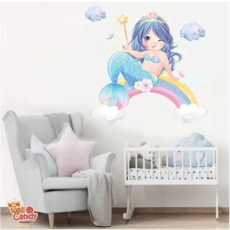 برچسب دیواری پری دریایی و رنگین کمان کد 1432