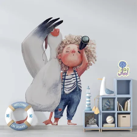 برچسب دیواری پسر و مرغ دریایی کد 1606