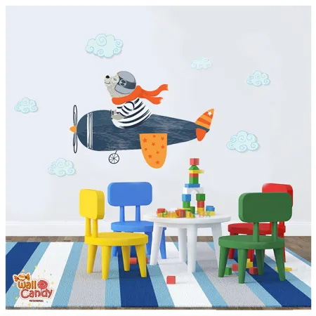 برچسب دیواری خرس خلبان شال نارنجی کد 1568