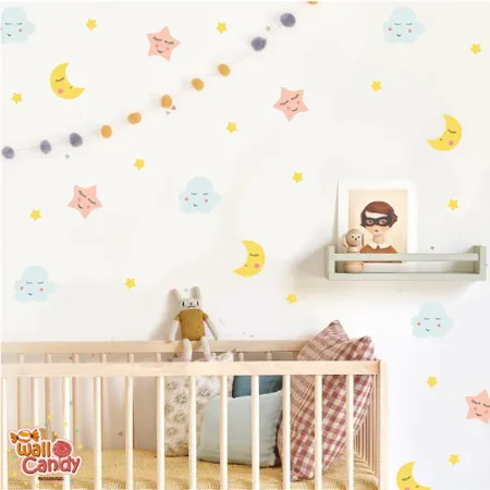 برچسب دیواری پترن ابر و ماه خندان کد 1449