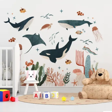 • برچسب دیواری دنیای زیرآب دنیایی رنگارنگ و شگفت‌انگیز از اعماق دریا را به اتاق کودک شما می‌آورد. ترکیب ماهی‌های کوچک و بزرگ، دلفین، ستاره دریایی، مرجان‌ها و گیاهان دریایی در یک طراحی فانتزی و کودکانه باعث می‌شود اتاق کودک سرشار از انرژی و نشاط شود. ⭐ ویژگی‌ها طراحی شاد و پر از جزئیات الهام گرفته از موجودات دریایی. رنگ‌های شفاف و جذاب برای ایجاد هیجان در فضای اتاق. نصب و جداسازی آسان بدون آسیب به سطح دیوار. جنس مقاوم، ضد آب و قابل شستشو. مناسب برای دکوراسیون اتاق خواب، اتاق بازی یا مهدکودک. 🎯 کاربردها دکوراسیون اتاق کودک با تم اقیانوس و ماجراجویی دریایی. ایجاد فضایی شاد و پر از رنگ برای یادگیری و بازی. گزینه‌ای خاص برای تم سیسمونی با موضوع حیوانات دریایی. مناسب برای تزئین فضاهای آموزشی با موضوع محیط زیست و دریا.
