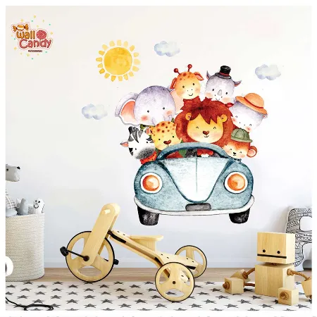 برچسب دیواری ماشین حیوانات آبرنگی