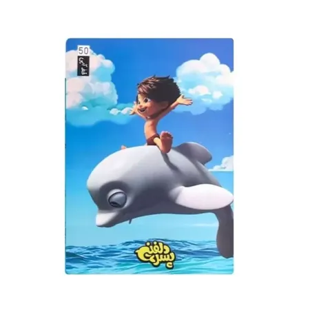دفتر 50 برگ تک خط فنری جلد گلاسه طرح پسر دلفینی برگ تحریر