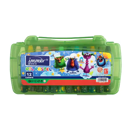 پاستل 12 رنگ کیفی دسته دار طلقی مدل JM619-12 ایمر