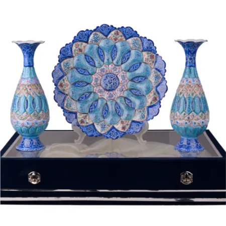 • نام کالا ست سه تایی بشقاب 30 و گلدان 25 کد کالا MG-Set27 قیمت 25,000,000 ریال حداقل تیراژ 10 رنگ بندی ابعاد کالا 50x31x11 cm ابعاد محل چاپ نوع چاپ حک لیزر, پلاک فلزی هزينه پلاک و حک لیزر برای هر عدد مبلغ 150000 ريال و برای حداقل تيراژ 20 عدد در نظر گرفته می‌شود.