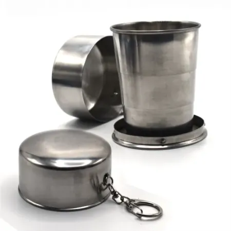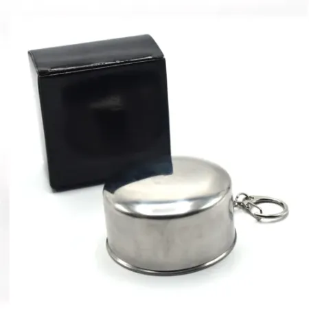 • لیوان استیل کد 02 این لیوان در حالت جمع شده به شکل استوانه ای با ارتفاع 3.5 سانتیمتر است که فضایی بسار کم را اشغال میکند و همین خصیصه باعث میشود در کیف یا داشبورد اتومبیل فضای بسیار کمی را بگیرد و هدیه ای کاربردی و جذاب خواهد بود این محصول دارای قلاب جاکلیدی است که میتوان آنرا به کیف کوله پشتی یا وسایل همراه متصل نمود. بدلیل جنس استیل بسیار مقاوم و نشکن بوده و قابلیت حک لیزر بسیار خوبی را بر روی درب آن بوجود آورده است. این هدیه تبلیغاتی کاربردی و خلاقانه دارای جعبه مقوایی زیبا و شکیل جهت هدیه دادن می باشد.