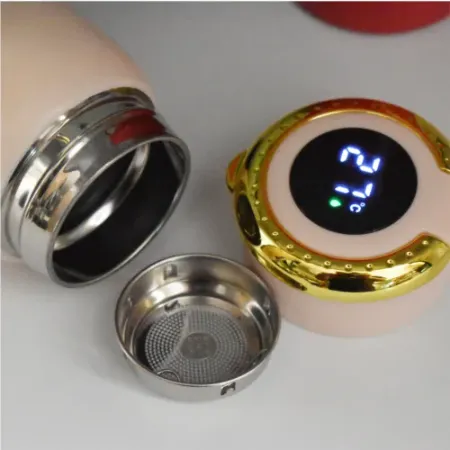 • فلاسک درجه دار لاکچری جدید دارای بدنه فلزی دوجداره استیل بل پوشش رنگ استاتیک کوره ای درجه یک وارداتی با حجم 500 سی سی برای نگهداری سرما و گرما به مدت 12 ساعت دارای نشانگر دمای داخل محفظه فلاسک دارای گیره و قلاب طلایی دایره ای شکل به همراه جعبه مقوایی با چاپ برند کارخانه امکان انجام حک لیزر روی بدنه با ماندگاری دائمی دارای توری استیل جهت جداسازی مایع از تفاله هایی که برای استفاده دمنوش ها وجود دارد نگهداری دمای مایعات گرم و همچنین مایعات سرد فروش بصورت رنگبندی در 5 رنگ (امکان فروش بصورت تکرنگ وجود ندارد) رنگبندی : سبز زیتونی، قرمز، آبی روشن، مشکی و کرم طراحی این فلاسک بسیار زیبا و ترکیب حلقه طلایی روی درب در کنار طراحی زیبای بدنه حس یک محصول لاکچری و لوکس را منتقل می کند.