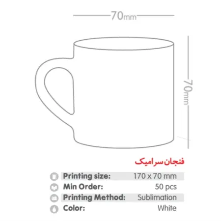 • لیوان سرامیکی تمام سفید با ارتفاع 7 سانتیمتر و قابلیت چاپ تمام رنگی در سرتاسر لیوان که طرح و تبلیغ را بصورتی بسیار زیبا نمایش می دهد.