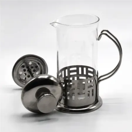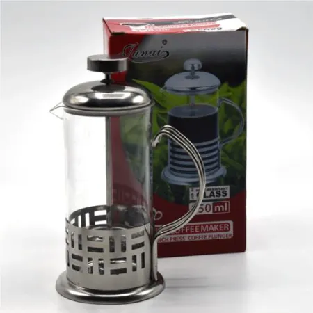 • دمنوش فرنچ پرس استیل حجم : 350 سی سی ظرف مخصوص دمنوش به همراه صافی متحرک استیل جنس: شیشه و استیل توضیح مهم : در کارتن چند طرح مختلف از بافت روی استیل وجود دارد و عکس موجود یکی از چند طرح دمنوش استیل می باشد. لذا امکان ارائه یک طرح خاص وجود ندارد دارای جعبه مقوایی