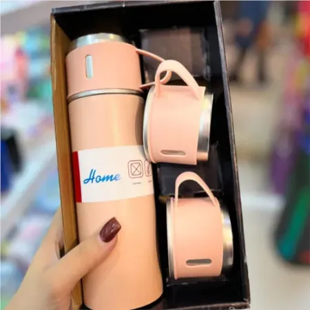 • فلاسک دو کاپ، فلاسک دولیوانه یا فلاسک سه لیوانه این مدل از فلاسک تبلیغاتی دارای دو لیوان بطور مجزا می باشد و یک لیوان بصورت درب روی آن قرار گرفته به همین دلیل هم بنام فلاسک دولیوانه و هم سه لیوانه شناخته میشود. این مدل دقیق مانند مدل بعدی یعنی AF-3 می باشد فقط جعبه کوچکتری دارد و در فضای کوچکتری چیدمان شده و تفاوت قیمت آن به همین دلیل فضای کمتر و هزینه کمتر در واردات و حمل می باشد واگرنه اقلام داخلی این دو مدل با همدیگر هیچ تفاوتی ندارند. یک لیوان بصورت درب فلاسک و دو لیوان در کنار فلاسک درون جعبه شکیل و ریبای هارد باکس رنگبندی : آبی سلطنتی، مشکی، طوسی، سبز، صورتی و استیل نقره ای ساخته شده از متریال با کیفیت و درجه یک فروش بصورت رنگبندی میباشد امکان چاپ تامپو روی لیوانها وجود دارد در صورت درخواست برای چاپ روی هر لیوان و اطلاع از قیمت با بخش فروش هماهنگ بفرمایید.