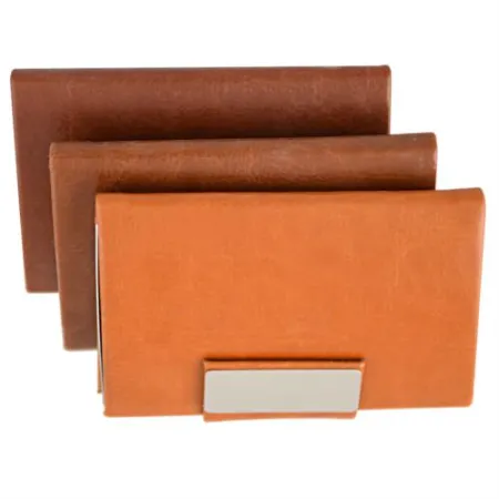 • جاکارتی تبلیغاتی چرم و استیل بدنه این جاکارتی از جنس فلزی با روکش چرم بوده و یکی از پرفروشترین مدلهای جاکارتی به شمار می آید. جارکارتی شیک و با کیفیت و طراحی زیبا میباشد. جاکارتی تبلیغاتی جزو هدایای تبلیغاتی ماندگار و ارزان با قیمت مناسب محسوب میگردد که امکان حک لیزر روی بدنه چرم و یا قسمت فلزی را دارد و تبلیغ بطور همیشگی به همراه مخاطب دیده و حفظ میگردد. رنگبندی قهوه ای تیره ، قهوه ای روشن ، عسلی و مشکی دارای جعبه مقوایی زیبا و شکیل مشکی رنگ