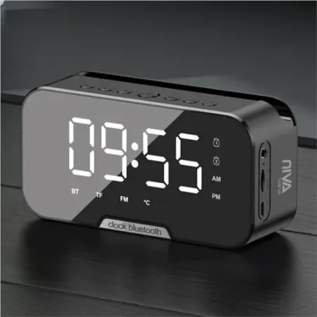 • ساعت دیجیتال دارای نشانگر دیجیتالی ساعت، نشانگر دماسنج ،تنظیم آلارم و تنظیم شدت نور اسپیکر بلوتوث با باتری لیتیومی 1200 میلی آمپر قدرت اسپیکر 3 وات رادیو FM استند موبایل در بالای ساعت امکان اتصال کارت حافظه میکرو امکان اتصال کابل AUX دارای جعبه مقوایی امکان چاپ تامپو