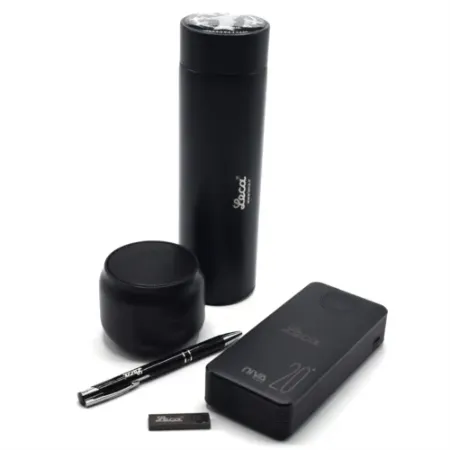 • ست مدیریتی کد 102 شامل فلاسک درجه دار مشکی ، پاوربانک، اسپیکر، فلش مموری و خودکار فلزی به همراه جعبه هاردباکس مشکی نفیس و زیبا با امکان حک روی پلاک طلایی روی درب جعبه هاردباکس توجه: در تمامی ستهای مدیریتی و پکهای مدیران هر یک از محصولات داخل پک قابل تغییر و جایگزینی و حتی حذف و اضافه هستند تمامی پکهای مدیریتی بنا به درخواست، سلیقه و بودجه مشتری پیشنهاد و تنظیم و چیدمان میشوند به همین خاطر قیمت نهایی تغییر خواهد داشت و بر اساس تعداد المانها و حجم و شکلشان برش فوم و ابعاد جعبه نیز تغییر خواهد کرد. همچنین هیچ محدودیتی در انتخاب اقلام ستهای مدیریتی وجود ندارد و هر محصول دیگری حتی خارج از کالاهای موجود سایت ادگیفت را میتوان بصورت جداگانه تهیه و در چیدمان نهایی اضافه نمود