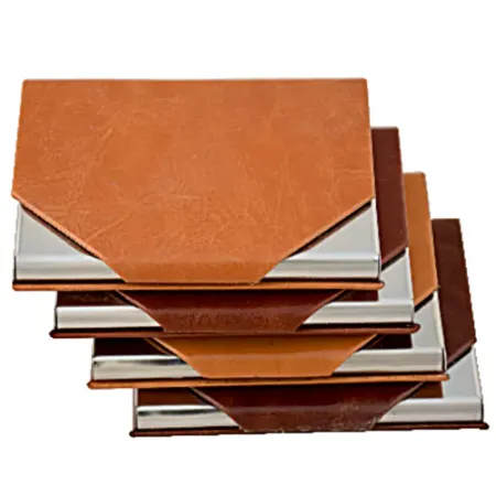 • توجه : در تمامی نمونه های جاکارتی برای رنگ طلایی 15 الی 20 درصد افزایش قیمت وجود دارد. جاکارتی تبلیغاتی چرم و استیل طرح دوگوشه بدنه این جاکارتی از جنس فلزی با روکش چرم بوده و یکی از پرفروشترین مدلهای جاکارتی به شمار می آید سطح داخل از پارچه جیر مشکی پوشیده شده و درب با استفاده از مگنت بسته و قفل میگردد. جارکارتی شیک و با کیفیت و طراحی زیبا میباشد. جاکارتی تبلیغاتی جزو هدایای تبلیغاتی ماندگار و ارزان با قیمت مناسب محسوب میگردد که امکان حک لیزر روی بدنه چرم و یا قسمت فلزی را دارد و تبلیغ بطور همیشگی به همراه مخاطب دیده و حفظ میگردد. رنگبندی قهوه ای تیره ، قهوه ای روشن ، عسلی و مشکی رنگبندی بدنه فلزی : نقره ای ، دودی و طلایی که قیمت در حالت طلایی افزایش دارد. دارای جعبه مقوایی زیبا و شکیل مشکی رنگ