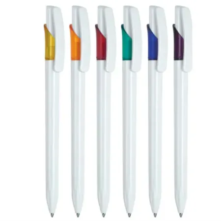 • هدایای تبلیغاتی خودکار پلاستیکی لوتوس بدنه کاملاً سفید و حلقه گیره رنگی امکان تولید خودکار بر اساس رنگ دلخواه مشتری توجه: امکان چاپ چندرنگ فقط روی گیره امکان پذیر می باشد و روی بدنه خودکار فقط چاپ تکرنگ امکان دارد ضمناً هزینه چاپ در چاپهای چند رنگ تنظیمی به ازای هر ضرب چاپ 1000 ریال خواهد بود. هزینه چاپ برای هر ضرب تکرنگ 900 ریال می باشد برای چاپ دو رنگ تنظیمی این مبلغ 2000 ریال محاسبه خواهد شد. (دو ضرب 900 ریالی + هزینه تنظیم رنگ دوم)