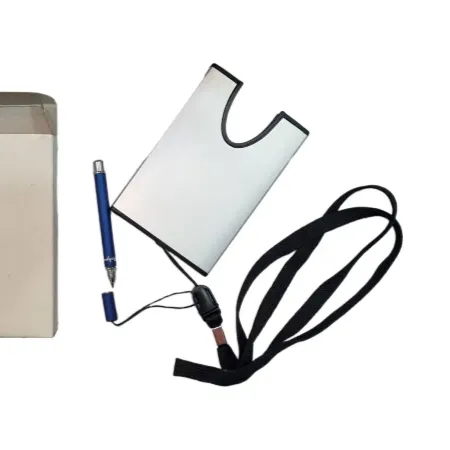 • قیمت با خودکار 69 هزار تومان قیمت بدون خودکار 49 هزار تومان جنس آلومینیوم همراه با خودکار فلزی کوتاه دارای بند آویز گردنی_و جیبی دارد جعبه دارد