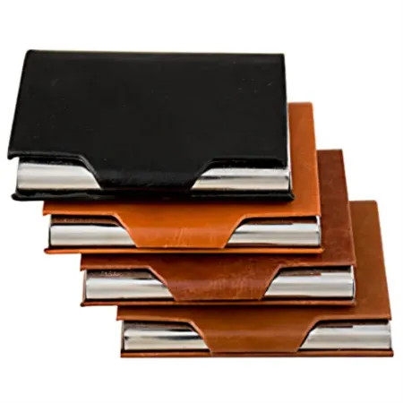 • توجه : در تمامی نمونه های جاکارتی برای رنگ طلایی 15 الی 20 درصد افزایش قیمت وجود دارد. جاکارتی تبلیغاتی چرم و استیل بدنه این جاکارتی از جنس فلزی با روکش چرم بوده و یکی از پرفروشترین مدلهای جاکارتی به شمار می آید سطح داخل از پارچه جیر مشکی پوشیده شده و درب با استفاده از مگنت بسته و قفل میگردد. جارکارتی شیک و با کیفیت و طراحی زیبا میباشد. جاکارتی تبلیغاتی جزو هدایای تبلیغاتی ماندگار و ارزان با قیمت مناسب محسوب میگردد که امکان حک لیزر روی بدنه چرم و یا قسمت فلزی را دارد و تبلیغ بطور همیشگی به همراه مخاطب دیده و حفظ میگردد. رنگبندی قهوه ای تیره ، قهوه ای روشن ، عسلی و مشکی رنگبندی بدنه فلزی : نقره ای ، دودی و طلایی که قیمت در حالت طلایی افزایش دارد. دارای جعبه مقوایی زیبا و شکیل مشکی رنگ