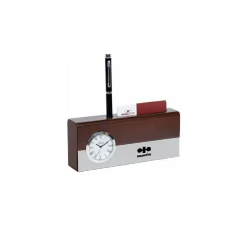 • یک میز کار مرتب و آراسته از ملزومات دفتر کاری است. نظم و ترتیب مدارک و اسناد و وسایل مورد نیاز دیگر باعث نظم و سرعت بخشیدن به کارها نیز می‌شود. قرارگیری آن‌ها روی میز باعث ایجاد حس خوب در محل کار می‌شود. با هدیه دادن آن به دوستان وعزیزان خود آن‌ها را غافلگیر کنید. ساعت رومیزی چوبی شامل جاخودکاری و جاکارت می باشد سایز : ۷۵×۳۳×۱۸۳ mm
