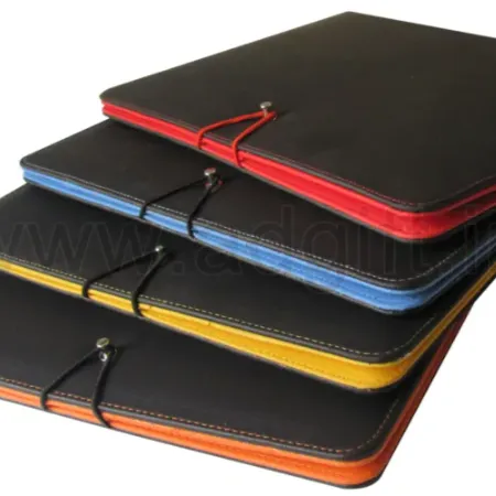 • در صورت نیاز به خودکار در فولدر، هزینه خودکار بطور جداگانه محاسبه می گردد. یادداشت تبلیغاتی با جلد چرمی در رنگ بندی متنوع سه ردیف جای کارت