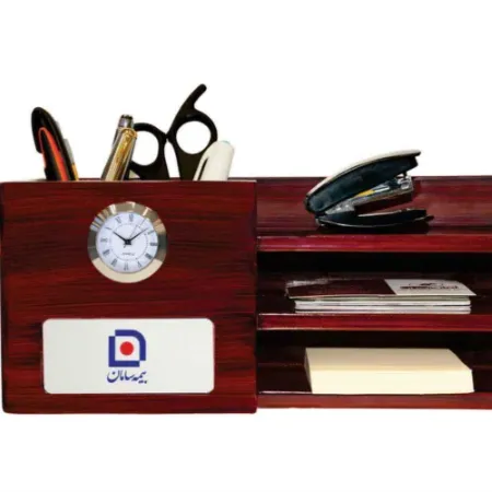 • تذکر: قیمت بدون خودکار و یادداشت می باشد در صورت درخواست به قیمت روز و متناسب با نوع انتخاب مشتری هزینه محاسبه و به قیمت افزوده می گردد. هدایای تبلیغاتی ساعت چوبی رومیزی بدنه تمام چوبی هدیه کاملاً مدیریتی و شیک شامل ساعت، جای خودکار، جای کارت ویزیت و ملزومات کوچک اداری با قابلیت حک لیزر روی بدنه و پلاک به همراه جعبه مقوائی