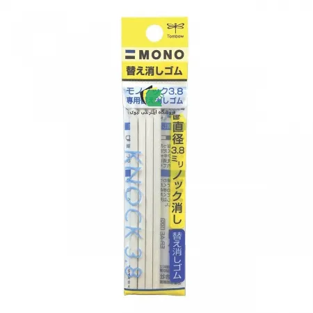 • توضیحات یدک پاک کن اتودی تومبو تولید کشور ژاپن دارای چهار عدد یدک پاکن باریک به شکل مداد نوکی در ضخامت 3.8 میلی متر