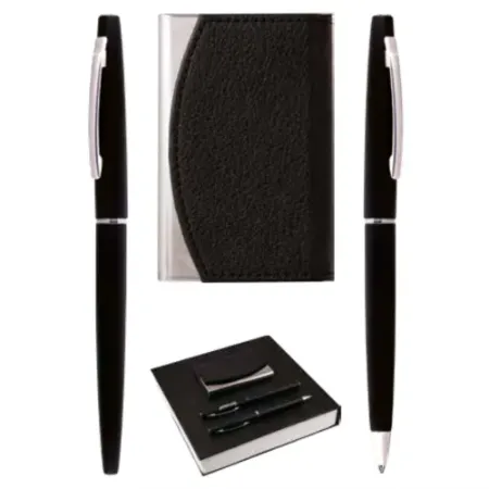 • ست هدیه نفیس مدیریتی هدیه تبلیغاتی مدیران و پزشکان ست هديه سه تکه چرمی شامل خودکار فلزی ، روان نویس و جاکارتی قابلیت حک لیزر روی تمامی موارد دارای جعبه فانتزی و شیک در صورت سفارش زیر تیراژ مبلغ 20% به هزینه کل اضافه میگردد.