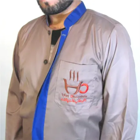 • روپوش رستورانی جنس پارچه فلامنت دارای یک جیب و کاور دکمه تولید انواع لباسکار متناسب با طرح و خواسته مشتریان قابل تغییر می باشد و در دوخت و تغییرات طرح و تولید هیچ محدودیتی وجود ندارد. با توجه به آپشنهای مختلفی که میتوان در تولید لباسکار کم یا زیاد نمود با بخش فروش و سفارشات شرکت هماهنگ بفرمایید. برخی از مواردی که در زیبایی و کارایی لباسکار میتوان به آنها اشاره کرد شامل: دوخت الیت : گلدوزی کوتاه حدود 1 تا 2 سانتیمتری که در طرفین شکافها مانند جیب دوخته میشود و علاوه بر زیبایی از پارگی های احتمالی جلوگیری می نماید. زیپ فلزی: بالطبع گرانتر و هزینه بیشتری دارد لایی و آستر توری: در سراسر قسمت داخلی لباسکار قرار میگیرد و از عرق کردن بیش از حد جلوگیری می کند شبرنگ: برخی از مشاغل برای لباسکارشان احتیاج به شبرنگ دارند که به تناسب سطح مصرفی محاسبه و به قیمت لباسکار اضافه می گردد. مغزی دوزی: از یک پارچه با رنگ متفاوت در محل اتصالات دوخت لباسکار استفاده میشود این دوخت باعث زیبایی لباسکار میشود.